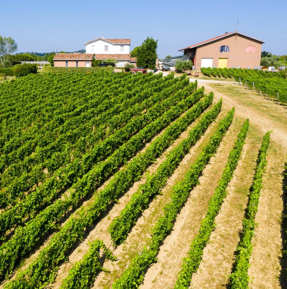 As far as the eye can see, acres of vineyards and olive groves stretch towards the south-west, upwards to Monte Titano and the hinterland hills of Verucchio and Santarcangelo.Villages and castles that bear testimony to the ancient and prestigious history of this area of Romagna and its city, founded by the Romans in 268 BC, surround the winery. Lying at a crossroad between roman roads via Flaminia and via Emilia, this erstwhile fiefdom of the Malatesta family (after the 14th century) nurtured endless artists, including Federico Fellini.